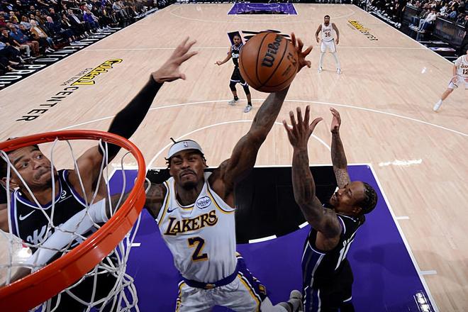 本场比赛中,湖人的先发锋线大闸贾里德-范德比尔特(Jarred Vanderbilt)的表现还是非常抢眼的。范德比尔特全场出场26分26秒,投篮3中1,三分线外1中0,罚球2中1,得到了3分12篮板4助攻1抢断的数据,其中还包括了6个前场篮板,还有4次失误和4次犯规,正负值为+4。范德比尔特在防守端的表现依然突出,他的防守能力对于球队的作用也是肉眼可见的,他在前后场篮板争抢方面的积极性以及他的比赛态度也是值得肯定的。除此之外,范德比尔特在进攻端也是能够起到一定的作用的,他在传球和策应方面的贡献度也是相当突出的。只是湖人方面还是考虑到了他的伤病情况并且控制了他的出场时间,这也是他的数据不能更进一步的重要因素。不夸张地说,考虑到范德比尔特在场上时球队的局面,如果他的出场时间能够更多一些,湖人可能也会赢得更加轻松一些。